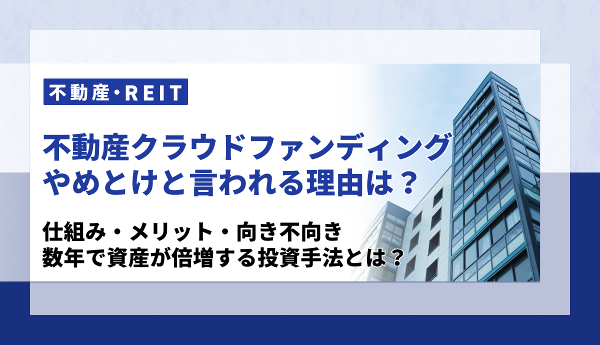 不動産クラウドファンディングは少額から不動産投資ができる手軽さがありますが、仕組み上のリスクから「やめとけ」と評価されがちです。